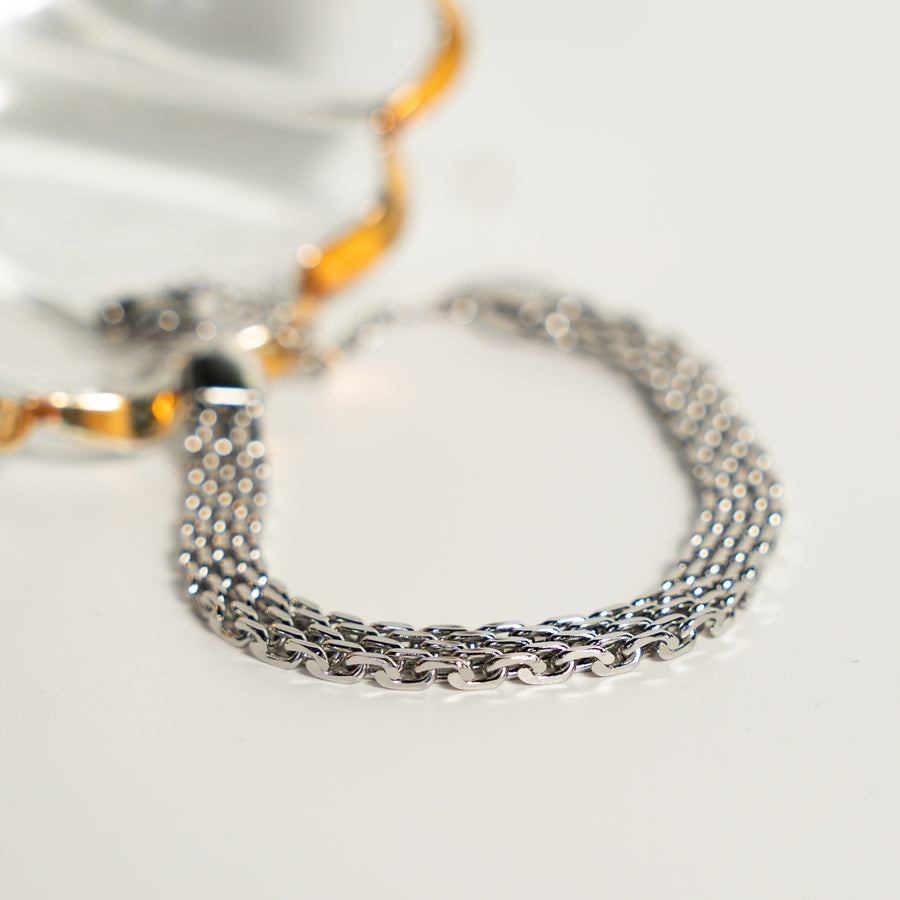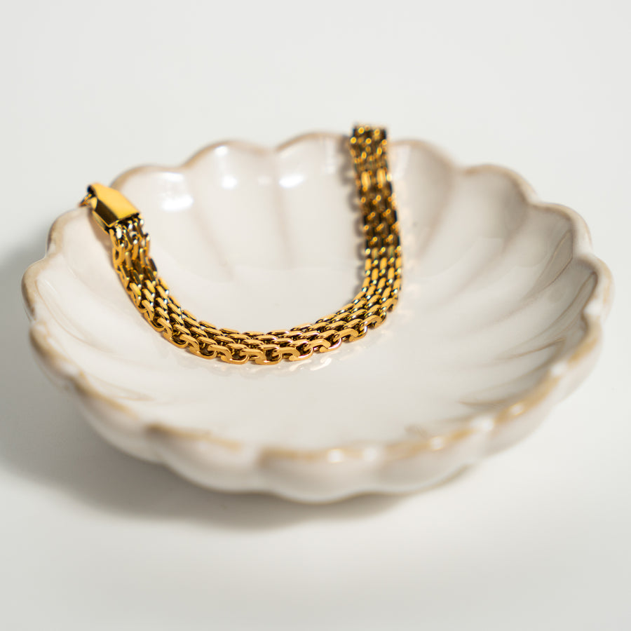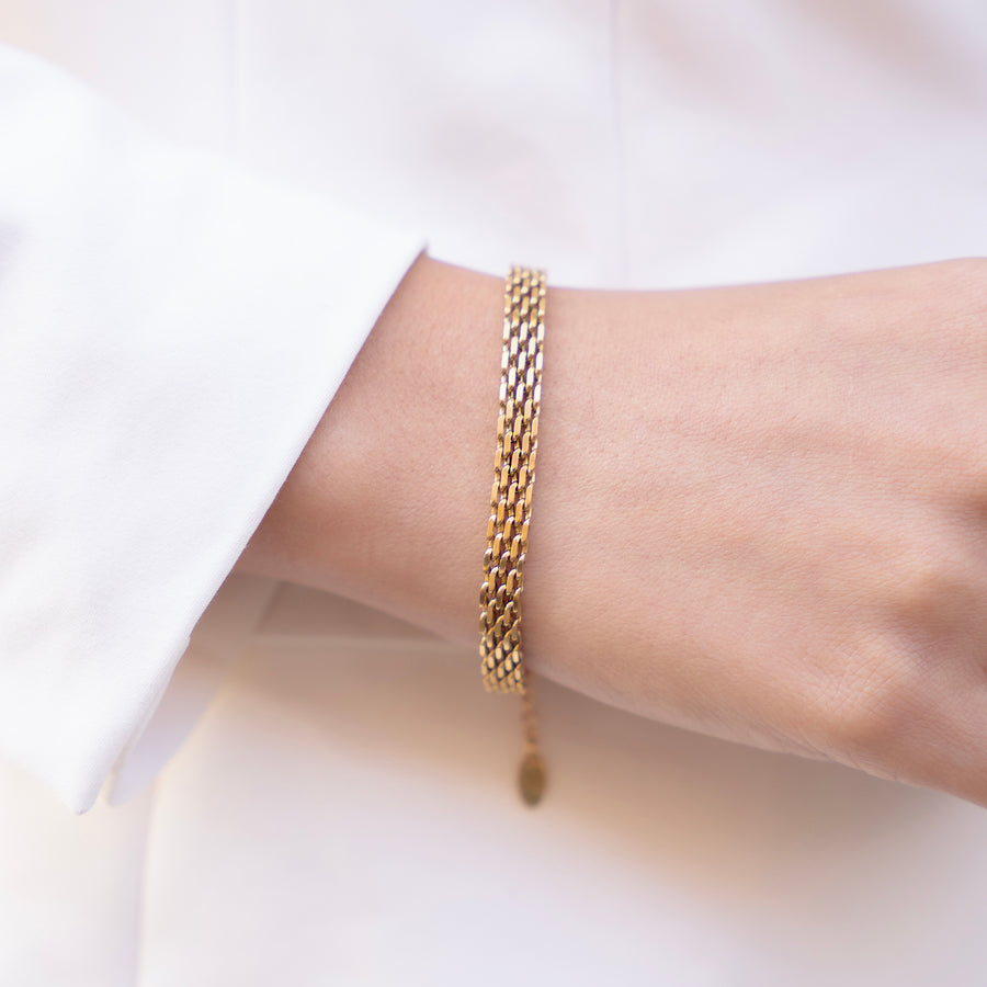 Aranyozott, hipoallergén, vízálló nemesacél karkötő.